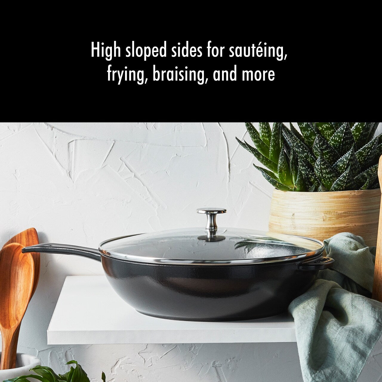 Cette poêle de 2,9 quarts avec couvercle en verre trempé est l'outil multifonctionnel ultime en cuisine. Ses parois hautes et inclinées la rendent idéale pour faire sauter, frire, braiser et plus encore, et elle est parfaite pour les plats qui brunissent sur la cuisinière et finissent au four. Le couvercle en verre massif retient l'humidité pour des résultats savoureux, et vous pouvez surveiller facilement la cuisson sans retirer le couvercle. La fonte possède des qualités exceptionnelles de rétention de chaleur, de sorte que la poêle chauffe uniformément. Et lorsqu'il est temps de servir, vous pouvez apporter cette élégante poêle directement à la table.