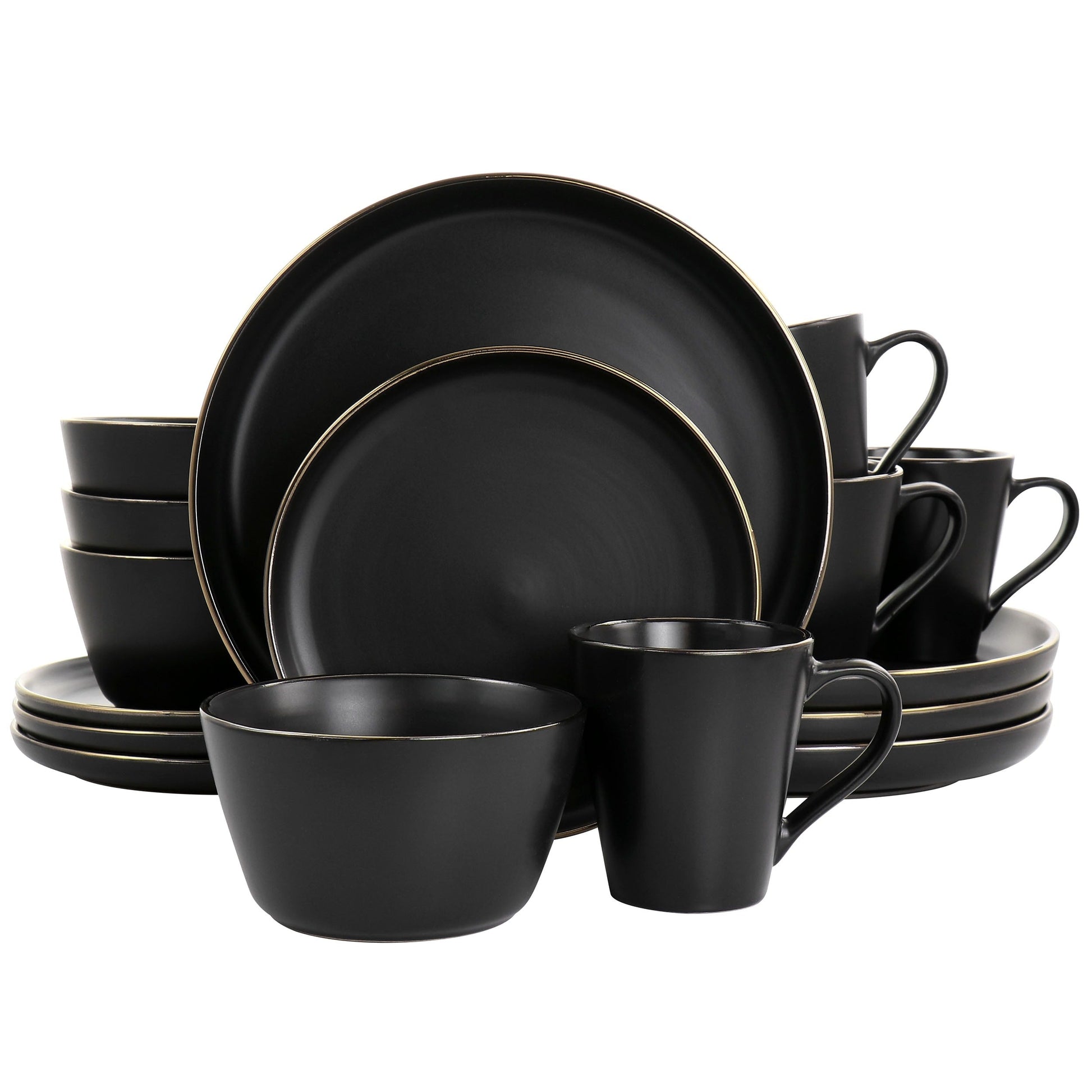 Service de table en grès 16 pièces noir avec bord doré
