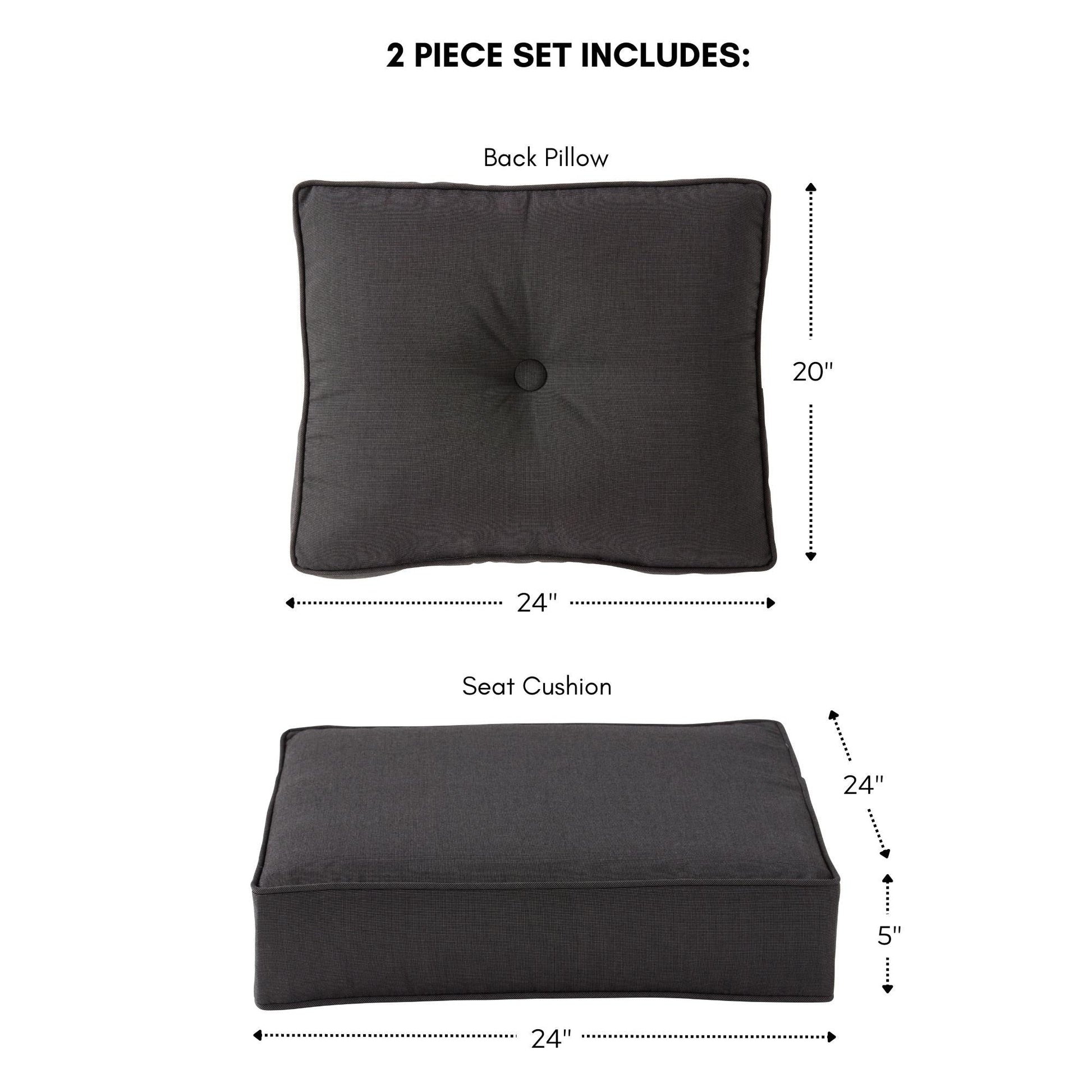 - Coussin de siège : 24' de largeur x 24' de profondeur x 5' d'épaisseur
