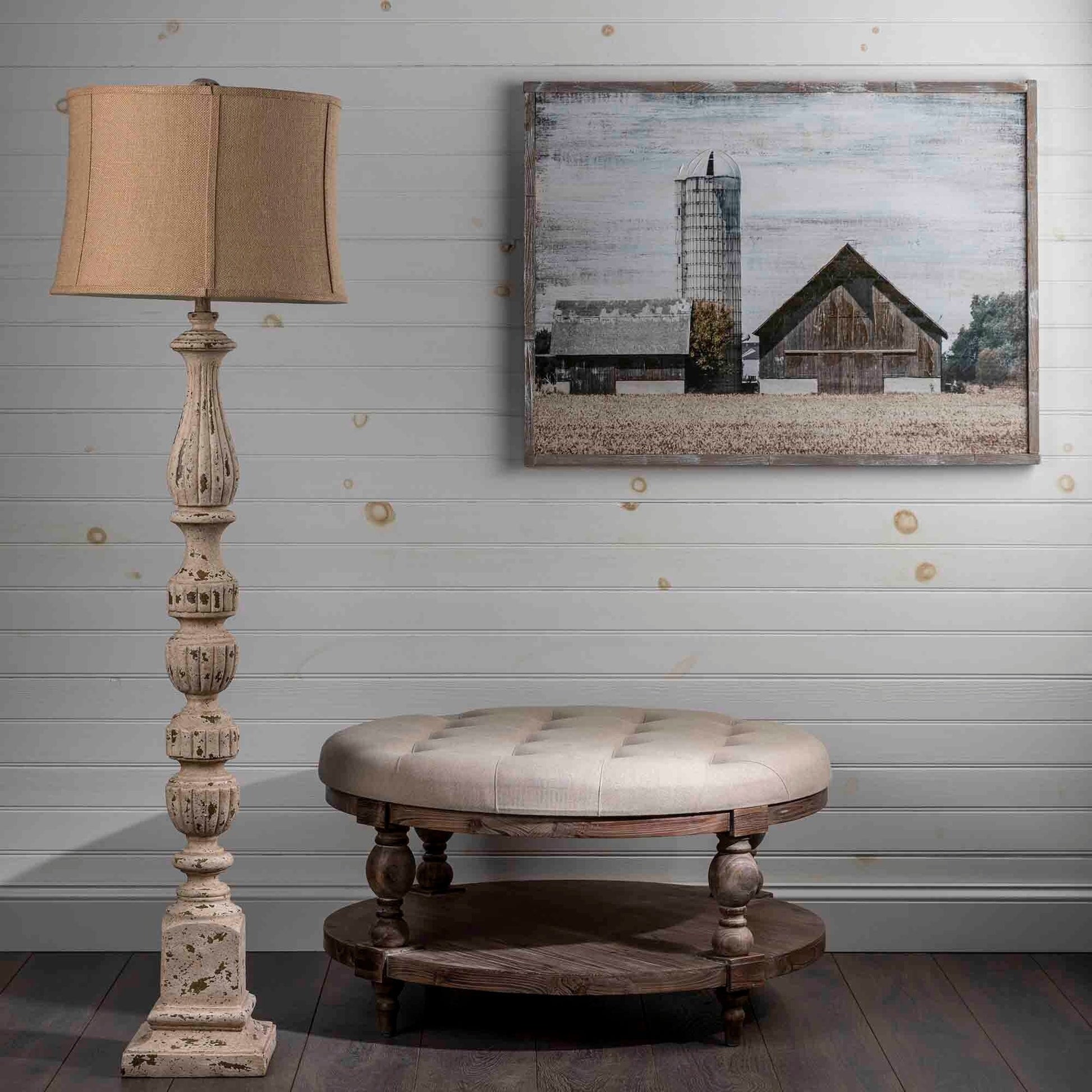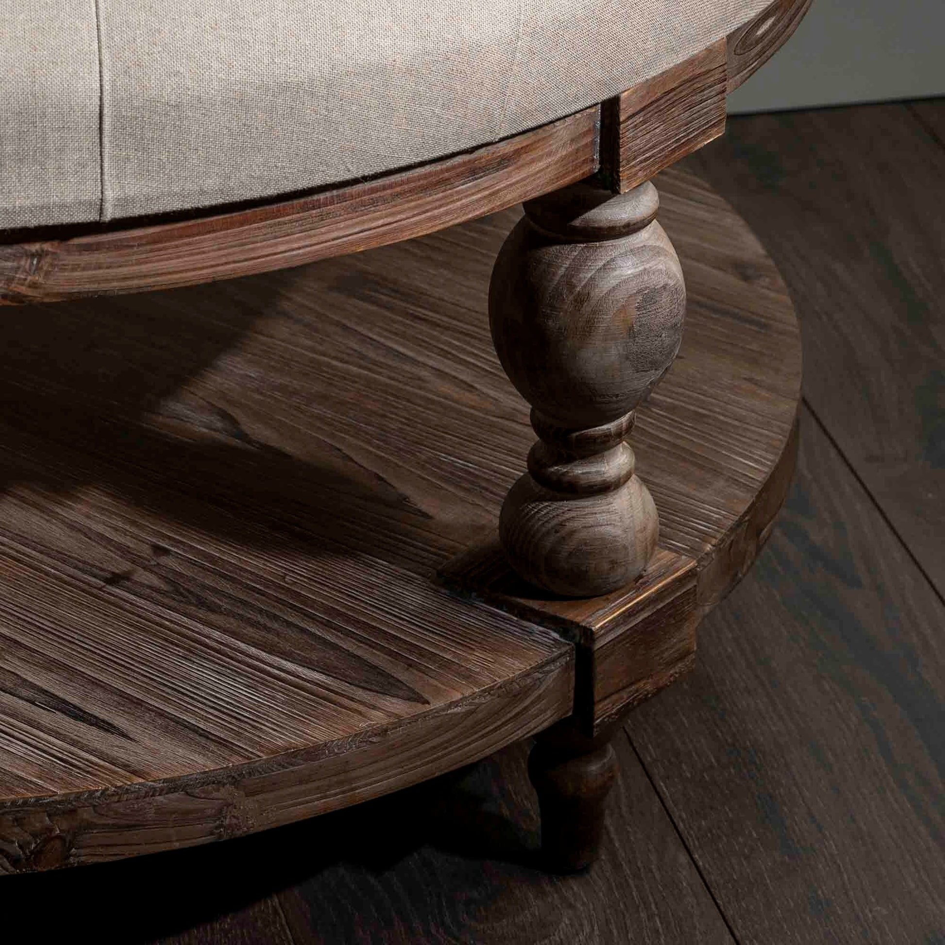 Tradition et confort se rencontrent dans le pouf Tahoe en bois rustique et tissu lin rond, avec une étagère inférieure pour le rangement et un dessus rembourré pour votre détente. La finition en bois de sapin brun clair des pieds tournés apporte de la profondeur au coussin en tissu lin couleur crème, pendant que vous reposez vos pieds ou utilisez le pouf comme siège temporaire. Sa forme ovale s'intègre facilement dans la plupart des espaces.