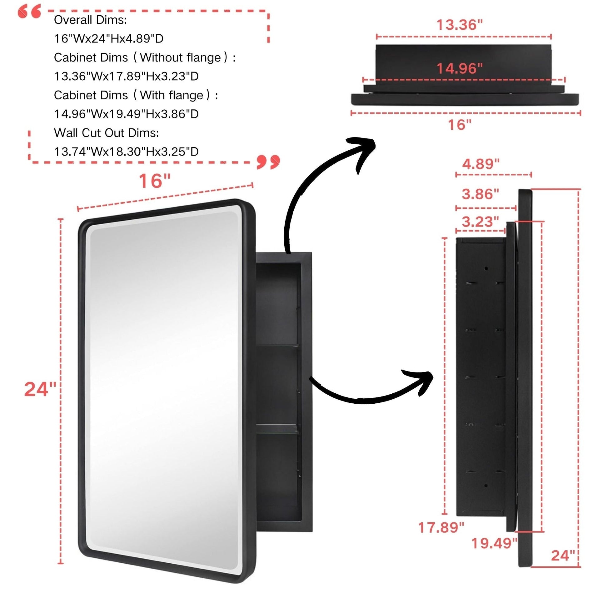TEHOME Armoires à pharmacie de salle de bain encastrées en métal style farmhouse avec miroir