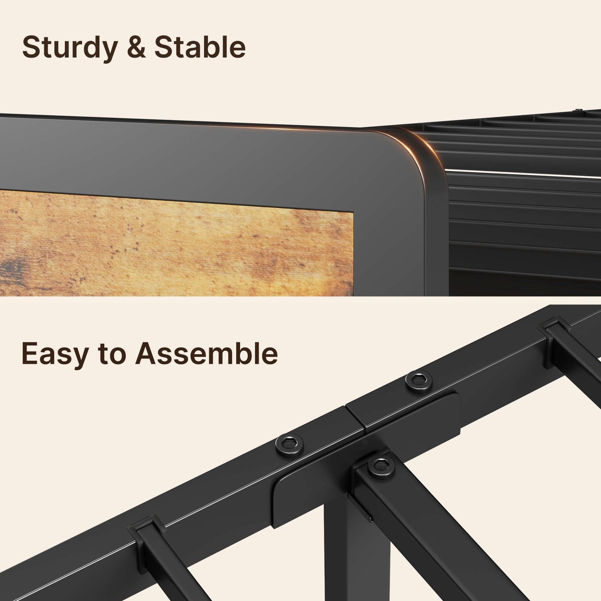 Cadre de lit à plateforme en métal pour matelas Twin / Double / Queen / King avec tête de lit rembourrée et rangement.