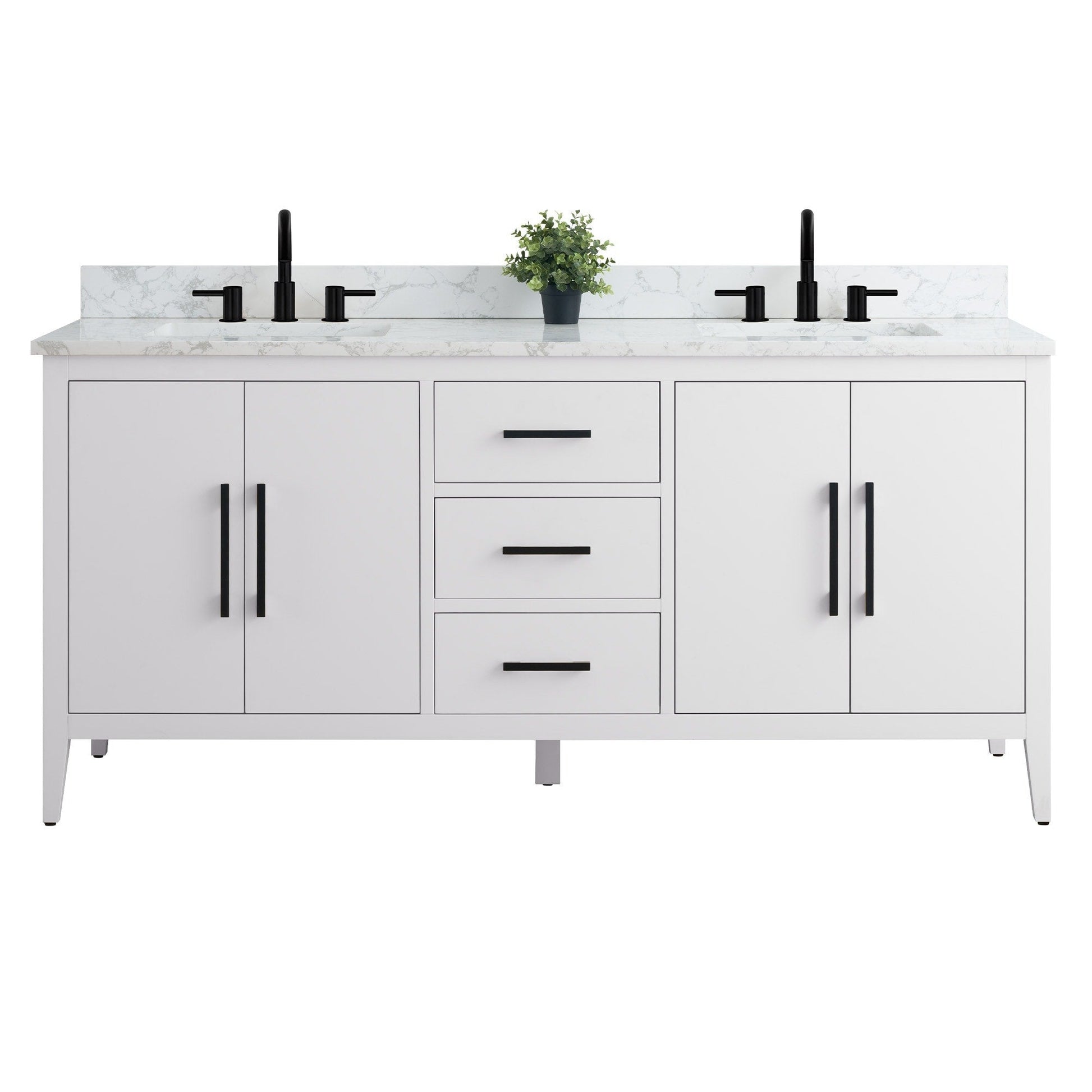 Meuble-lavabo de salle de bain Art 72 avec double lavabo et dessus en marbre synthétique.