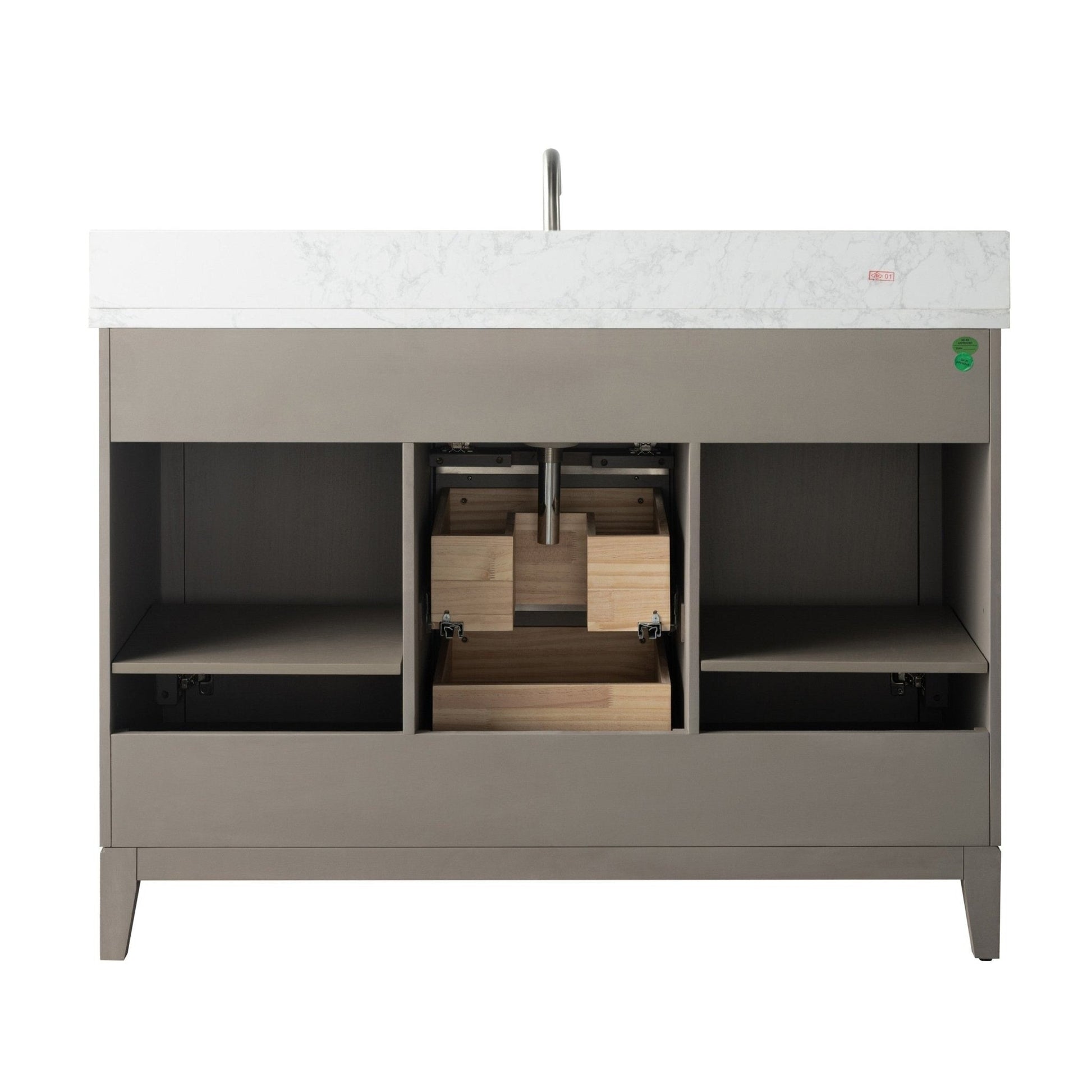 Vanity Art vous présente la vanité de salle de bain haut de gamme en bois de peuplier avec lavabo intégré. C'est la combinaison parfaite de fonctionnalité et de style pour votre maison. Ce meuble essentiel offre un espace de rangement généreux, avec un plateau rabattable, des étagères réglables et des tiroirs pour garder vos effets personnels organisés et facilement accessibles. Conçu pour plus de commodité, notre meuble-lavabo possède un élégant plan de travail en marbre composite Ariston qui ajoute non seulement une touche d'élégance, mais est aussi facile à nettoyer. Le lavabo rectangulaire à montage sous plan complète le plan de travail, créant un aspect harmonieux et attrayant pour votre salle de bain. Construit pour durer, notre meuble sous-lavabo est équipé de portes et de tiroirs à fermeture amortie et de charnières de haute qualité, garantissant un fonctionnement fluide et fiable. La polyvalence est essentielle – nos meubles-lavabos de salle de bain ne sont pas réservés à la salle de bain. Avec son design élégant et ses fonctionnalités pratiques, il est parfait comme meuble de cuisine avec lavabo.