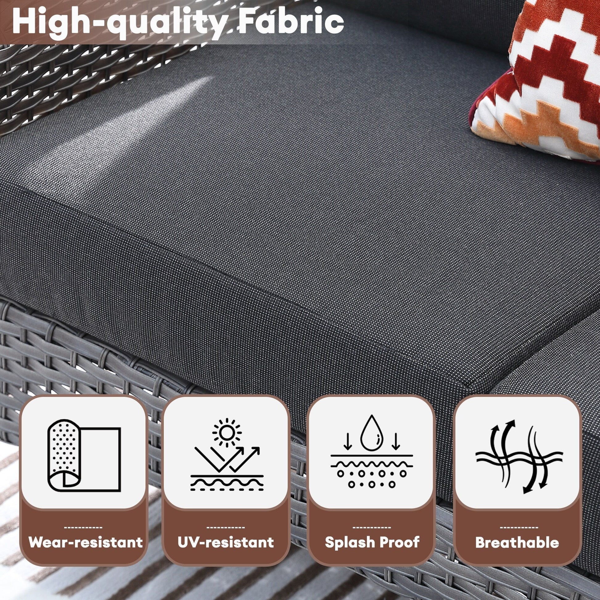 Sa structure métallique robuste à revêtement en poudre et son tressage en rotin PE résistant aux intempéries rendent cet ensemble à la fois élégant et durable. Les housses de coussins résistantes aux UV et à l'usure sont adaptées à une utilisation prolongée en extérieur. Livré avec des coussins épais et moelleux à haute résilience, il vous offre un confort et une relaxation optimaux. La table à deux niveaux offre un espace de rangement supplémentaire, parfait pour recevoir des amis ou passer des moments agréables en famille.
