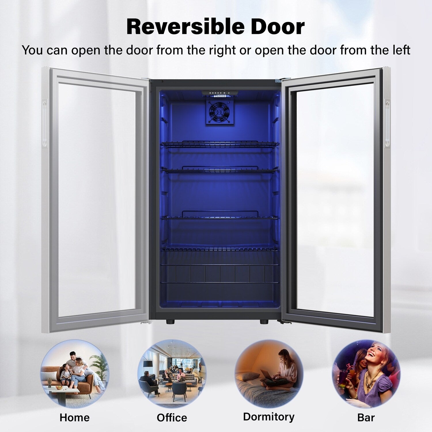 - Design élégant avec protection UV : La porte en acier inoxydable et le verre double vitrage à protection UV ajoutent non seulement une touche moderne à n'importe quelle pièce, mais protègent également vos boissons des rayons UV nocifs. Le design isolé et résistant à l'humidité garantit que les boissons restent fraîches, conservant ainsi leur saveur et leur qualité originales.
