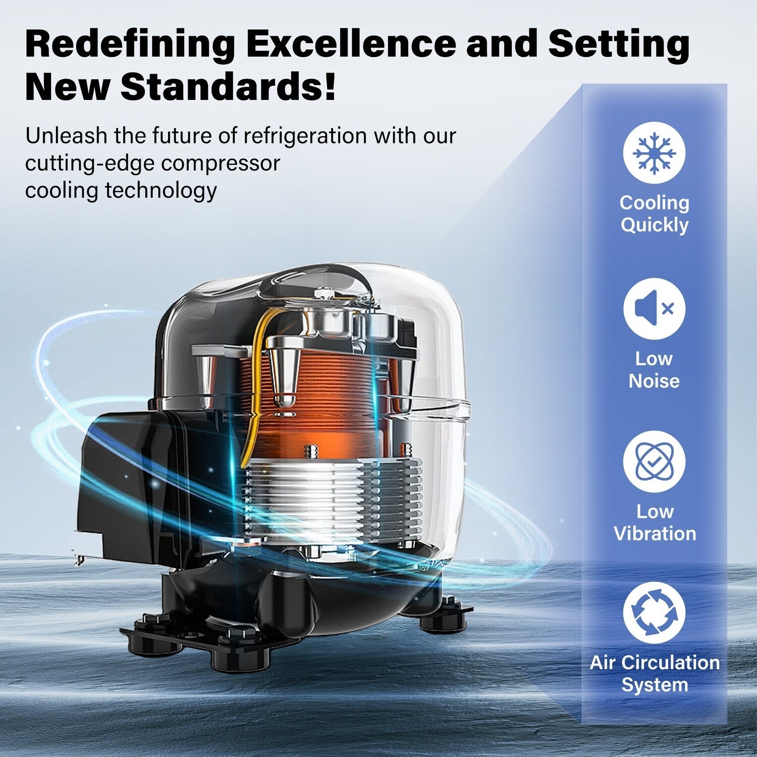 - Fonctionnement silencieux et refroidissement uniforme : Conçu pour un fonctionnement silencieux à seulement 42 décibels, le refroidisseur de boissons Yeego est parfait pour les espaces calmes comme les chambres à coucher ou les bureaux. Son système de circulation d'air assure un refroidissement uniforme et constant dans tout le réfrigérateur, préservant ainsi le goût et la qualité de vos boissons.